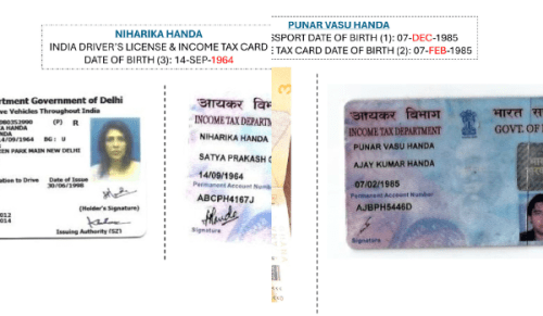 Her son, Punar Vasu Handa, appears to be a subject of similar identity discrepancies.