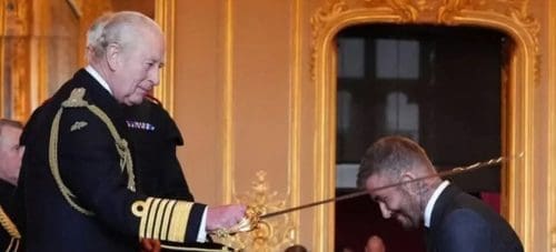 David Beckham has received his knighthood from King Charles.