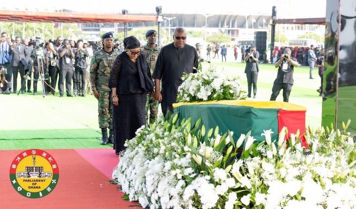 Mahama joins mourners to honor the late Nana Konadu Agyeman-Rawlings at a solemn farewell ceremony