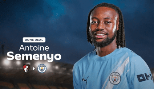 Manchester City have secured the signing of Ghanaian forward Antoine Semenyo from AFC Bournemouth in a £64 million deal, bolstering Pep Guardiola’s attacking options ahead of the new season.