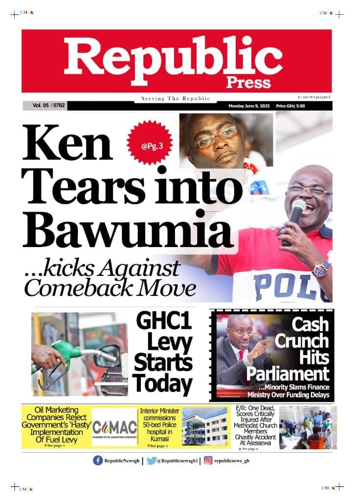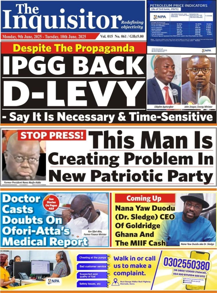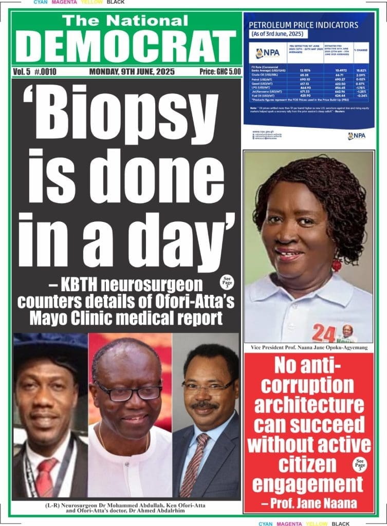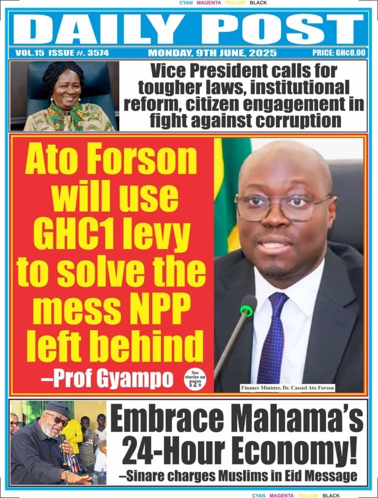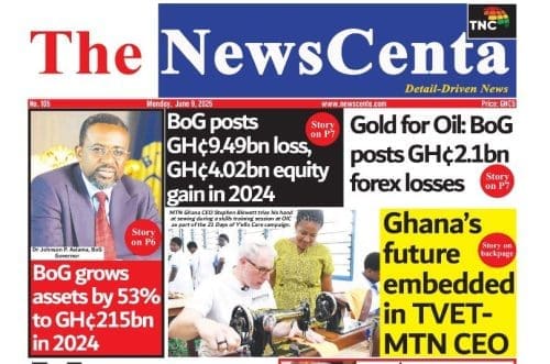 Monday, June 9, 2025 Newspaper Headlines <img class="alignnone size-large wp-image-12794" src="https://newscenta.com/wp-content/uploads/2025/06/The-Inquisitor-758x1024.jpeg" alt="" width="758" height="1024" /><img class="alignnone size-large wp-image-12793" src="https://newscenta.com/wp-content/uploads/2025/06/The-GH-Point-796x1024.jpeg" alt="" width="796" height="1024" /><img class="alignnone size-large wp-image-12792" src="https://newscenta.com/wp-content/uploads/2025/06/RP-726x1024.jpeg" alt="" width="726" height="1024" /><img class="alignnone size-large wp-image-12790" src="https://newscenta.com/wp-content/uploads/2025/06/newsfront-1-766x1024.jpg" alt="" width="766" height="1024" /><img class="alignnone size-large wp-image-12789" src="https://newscenta.com/wp-content/uploads/2025/06/National-Democrat-753x1024.jpeg" alt="" width="753" height="1024" /><img class="alignnone size-large wp-image-12788" src="https://newscenta.com/wp-content/uploads/2025/06/Daily-Post-777x1024.jpeg" alt="" width="777" height="1024" /><img class="alignnone size-large wp-image-12787" src="https://newscenta.com/wp-content/uploads/2025/06/BFT-702x1024.jpeg" alt="" width="702" height="1024" /> [caption id="attachment_12785" align="alignnone" width="766"]<img class="size-large wp-image-12785" src="https://newscenta.com/wp-content/uploads/2025/06/newsfront-766x1024.jpg" alt="Newspapers, Headlines, Newscenta, Monday, June 9" width="766" height="1024" /> Ghanaian Newspapers headlines of Monday, June 9, 2025[/caption]