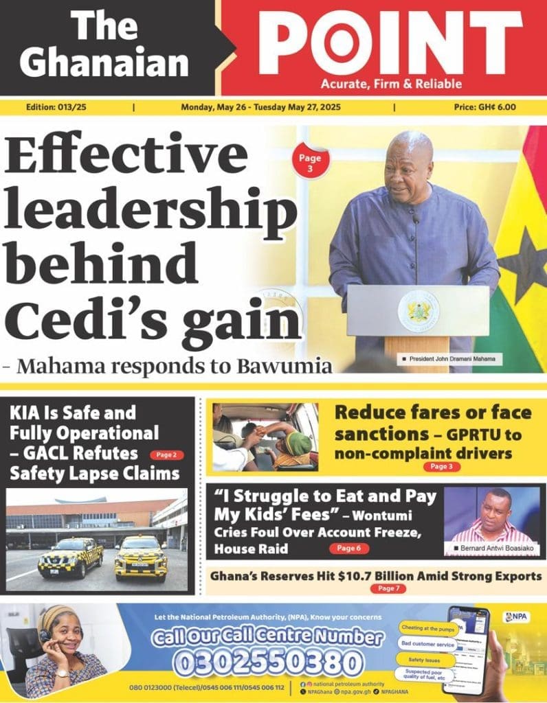 Monday, May 26, 2025 Newspaper Headlines [caption id="attachment_11415" align="alignnone" width="766"]<img class="size-large wp-image-11415" src="https://newscenta.com/wp-content/uploads/2025/05/WhatsApp-Image-2025-05-25-at-22.53.54_e2deffad-766x1024.jpg" alt="Newspapers, Headlines, Newscenta, Monday, May 26, " width="766" height="1024" /> Ghanaian Newspapers headlines of Monday, May 26, 2025[/caption] <img class="alignnone size-large wp-image-11416" src="https://newscenta.com/wp-content/uploads/2025/05/WhatsApp-Image-2025-05-26-at-01.14.21_ea4d5b57-723x1024.jpg" alt="" width="723" height="1024" /> <img class="alignnone size-large wp-image-11417" src="https://newscenta.com/wp-content/uploads/2025/05/WhatsApp-Image-2025-05-26-at-02.25.24_654f8d8f-766x1024.jpg" alt="" width="766" height="1024" /> <img class="alignnone size-large wp-image-11418" src="https://newscenta.com/wp-content/uploads/2025/05/WhatsApp-Image-2025-05-26-at-02.25.25_9e3d39c7.jpg" alt="" width="720" height="795" /> <img class="alignnone size-large wp-image-11419" src="https://newscenta.com/wp-content/uploads/2025/05/WhatsApp-Image-2025-05-26-at-02.25.27_1ae8a2dd-823x1024.jpg" alt="" width="823" height="1024" /> <img class="alignnone size-large wp-image-11420" src="https://newscenta.com/wp-content/uploads/2025/05/WhatsApp-Image-2025-05-26-at-02.25.28_51825c74-804x1024.jpg" alt="" width="804" height="1024" /> <img class="alignnone size-large wp-image-11421" src="https://newscenta.com/wp-content/uploads/2025/05/WhatsApp-Image-2025-05-26-at-02.25.29_1a2a177d-765x1024.jpg" alt="" width="765" height="1024" /> <img class="alignnone size-large wp-image-11422" src="https://newscenta.com/wp-content/uploads/2025/05/WhatsApp-Image-2025-05-26-at-02.25.31_ac636d62-723x1024.jpg" alt="" width="723" height="1024" /> <img class="alignnone size-large wp-image-11423" src="https://newscenta.com/wp-content/uploads/2025/05/WhatsApp-Image-2025-05-26-at-02.25.32_e4c8039f-723x1024.jpg" alt="" width="723" height="1024" /> <img class="alignnone size-large wp-image-11424" src="https://newscenta.com/wp-content/uploads/2025/05/WhatsApp-Image-2025-05-26-at-02.25.34_1c7ad562-853x1024.jpg" alt="" width="853" height="1024" /> <img class="alignnone size-large wp-image-11425" src="https://newscenta.com/wp-content/uploads/2025/05/WhatsApp-Image-2025-05-26-at-02.25.35_6652ac88-798x1024.jpg" alt="" width="798" height="1024" /> <img class="alignnone size-large wp-image-11426" src="https://newscenta.com/wp-content/uploads/2025/05/WhatsApp-Image-2025-05-26-at-02.25.36_7fc492bb-754x1024.jpg" alt="" width="754" height="1024" /> <img class="alignnone size-large wp-image-11427" src="https://newscenta.com/wp-content/uploads/2025/05/WhatsApp-Image-2025-05-26-at-02.30.51_0ee81202.jpg" alt="" width="720" height="883" /> <img class="alignnone size-large wp-image-11428" src="https://newscenta.com/wp-content/uploads/2025/05/WhatsApp-Image-2025-05-26-at-02.30.53_c51f884e.jpg" alt="" width="720" height="880" /> <img class="alignnone size-large wp-image-11429" src="https://newscenta.com/wp-content/uploads/2025/05/WhatsApp-Image-2025-05-26-at-03.53.24_b8a103d6-759x1024.jpg" alt="" width="759" height="1024" /> <img class="alignnone size-large wp-image-11430" src="https://newscenta.com/wp-content/uploads/2025/05/WhatsApp-Image-2025-05-26-at-04.29.15_e41fde09-766x1024.jpg" alt="" width="766" height="1024" /> <img class="alignnone size-large wp-image-11431" src="https://newscenta.com/wp-content/uploads/2025/05/WhatsApp-Image-2025-05-26-at-04.29.16_aa847dc5-779x1024.jpg" alt="" width="779" height="1024" /> <img class="alignnone size-large wp-image-11432" src="https://newscenta.com/wp-content/uploads/2025/05/WhatsApp-Image-2025-05-26-at-04.32.17_934eb615-796x1024.jpg" alt="" width="796" height="1024" /> <img class="alignnone size-large wp-image-11433" src="https://newscenta.com/wp-content/uploads/2025/05/WhatsApp-Image-2025-05-26-at-05.35.42_4182f3e8-766x1024.jpg" alt="" width="766" height="1024" /> <img class="alignnone size-large wp-image-11434" src="https://newscenta.com/wp-content/uploads/2025/05/WhatsApp-Image-2025-05-26-at-05.36.27_c17cc6d0-779x1024.jpg" alt="" width="779" height="1024" /> <img class="alignnone size-large wp-image-11435" src="https://newscenta.com/wp-content/uploads/2025/05/WhatsApp-Image-2025-05-26-at-05.37.07_85a71cc1-726x1024.jpg" alt="" width="726" height="1024" />