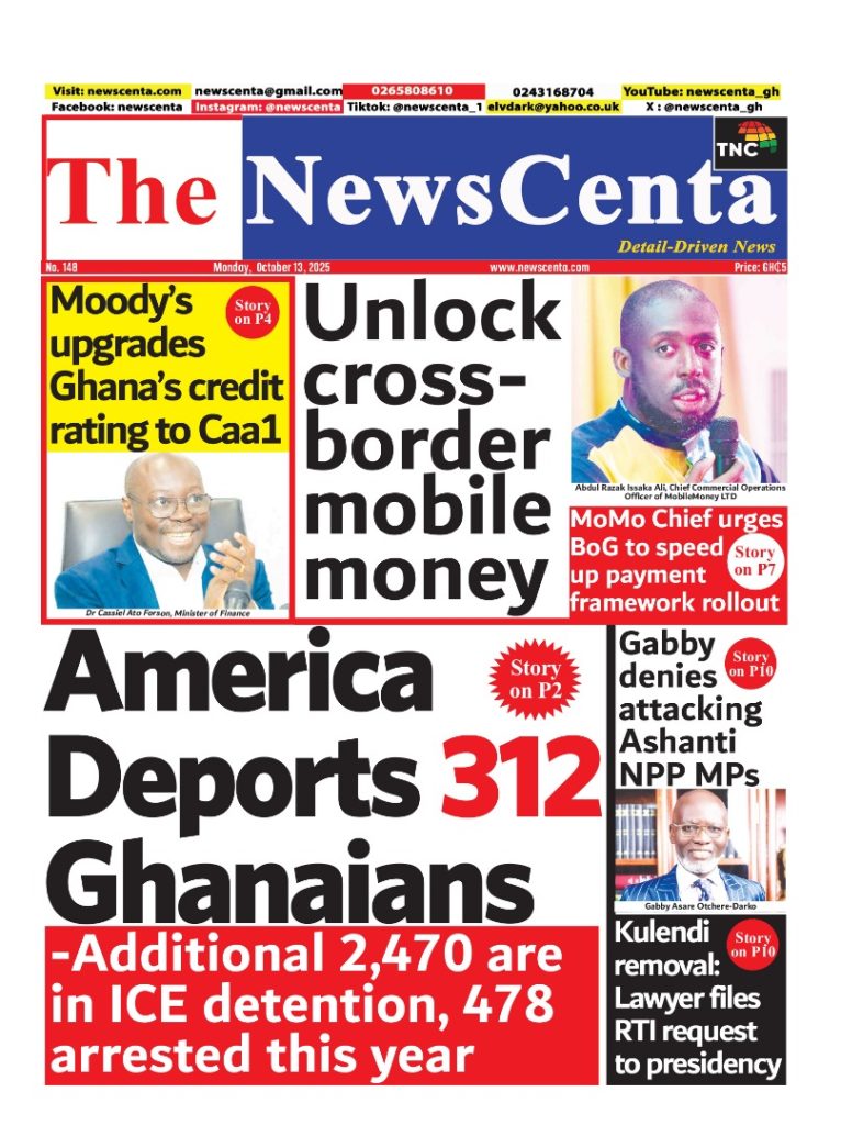 Newspapers, Headlines, Newscenta, Monday, October 13,