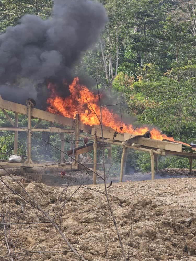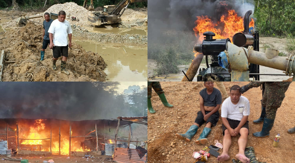 Evidence of river diversion, two heavy-duty water pumps, and 12 makeshift mining structures was uncovered. All structures were subsequently destroyed.