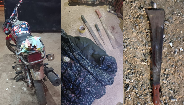 It said police retrieved three face masks, three machetes, and one unregistered Royal 125 motorbike from the scene.