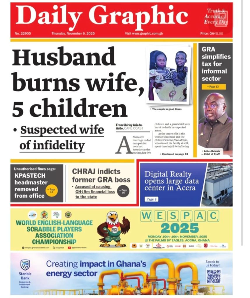 Ghanaian Newspapers headlines for Thursday, November 6,