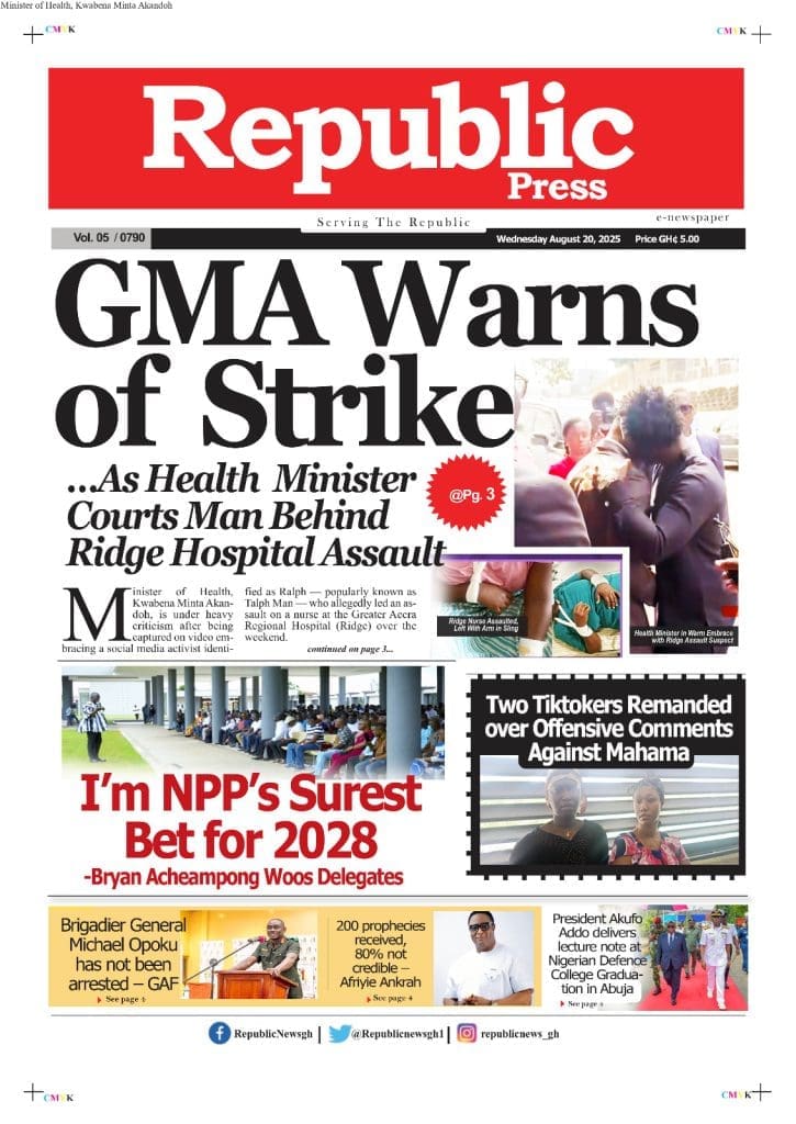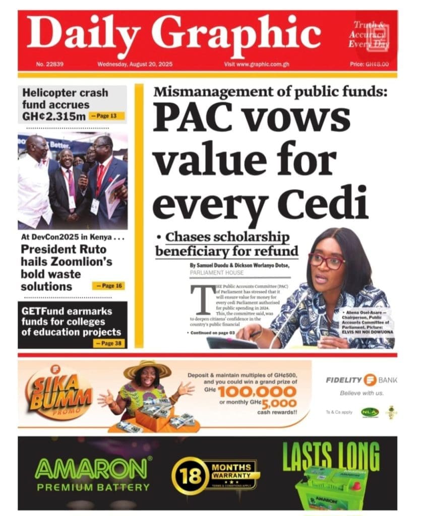 Ghanaian Newspapers headlines of Wednesday, August 20,
