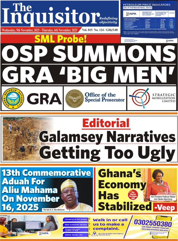 Ghanaian Newspapers headlines for Wednesday, November 5,
