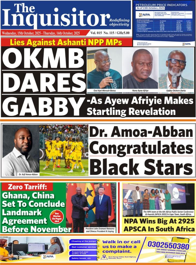 Ghanaian Newspapers headlines for Wednesday, October 15,