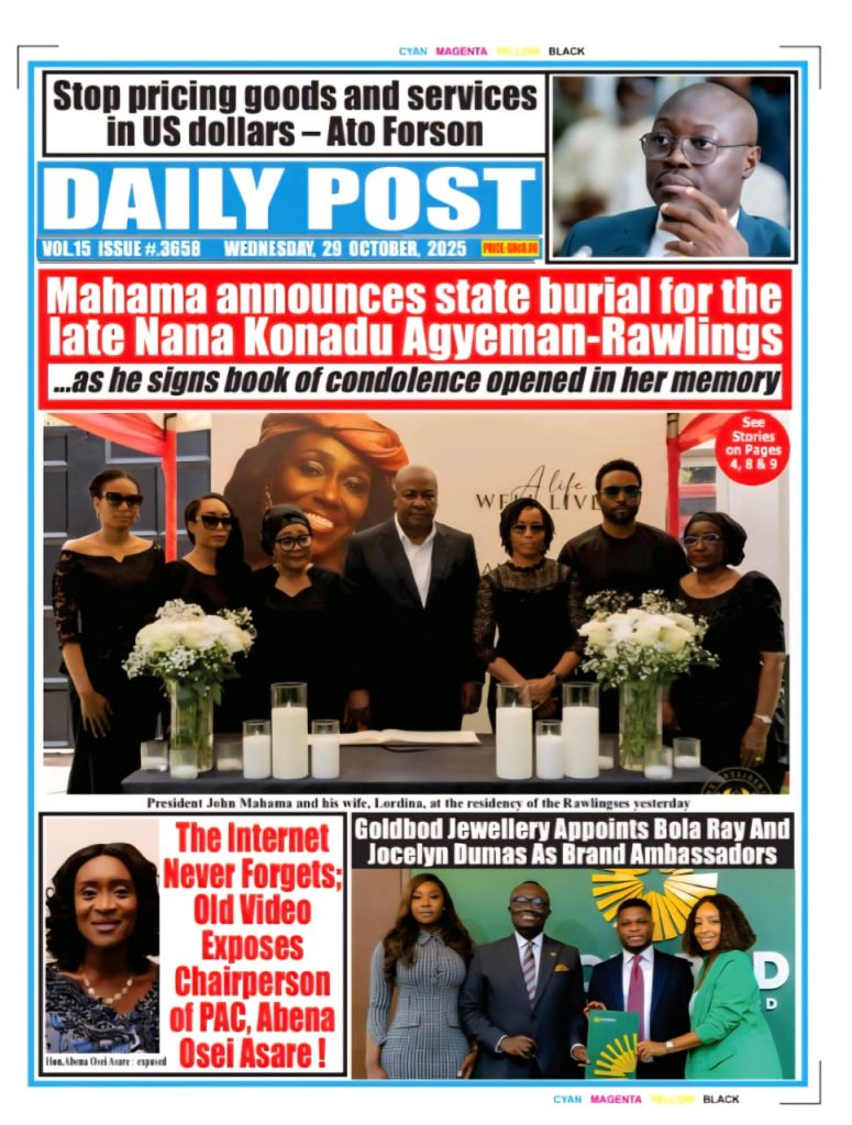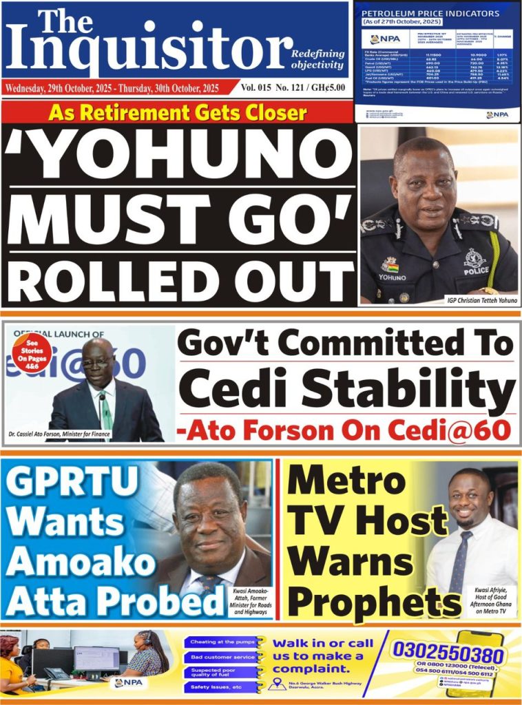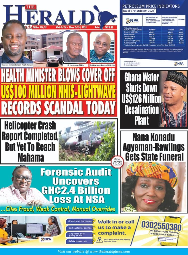 Ghanaian Newspapers headlines for Wednesday, October 29,