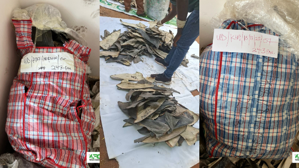 The seizure involved 3,967 dried shark fins weighing a total of 488 kilogrammes, packed in 14 wrapped jute bags popularly known as “Ghana Must Go” bags.